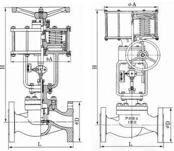 配用附件:電磁閥、閥位回訊器、空氣過濾減壓器、手輪操作機(jī)構(gòu)外形尺寸