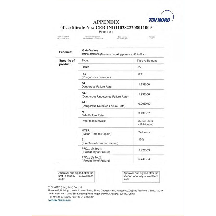 閘閥 SIL證書(shū) 2